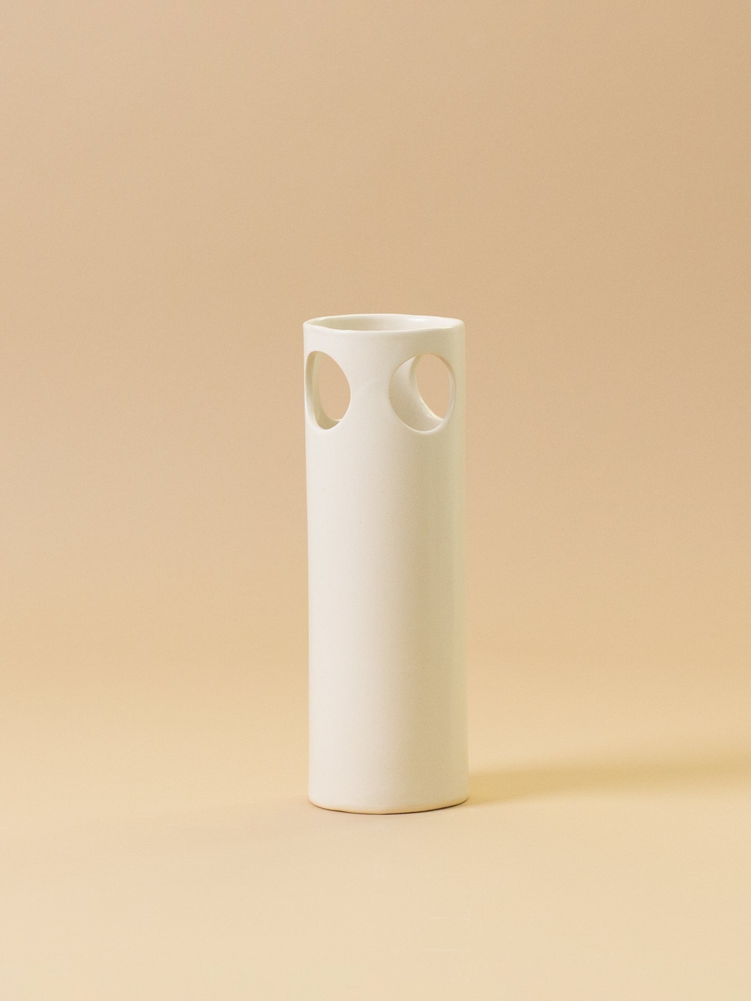 The circular holes near the top of the vase mimic the cenote openings and invite you to configure your fresh arrangements in creative ways.