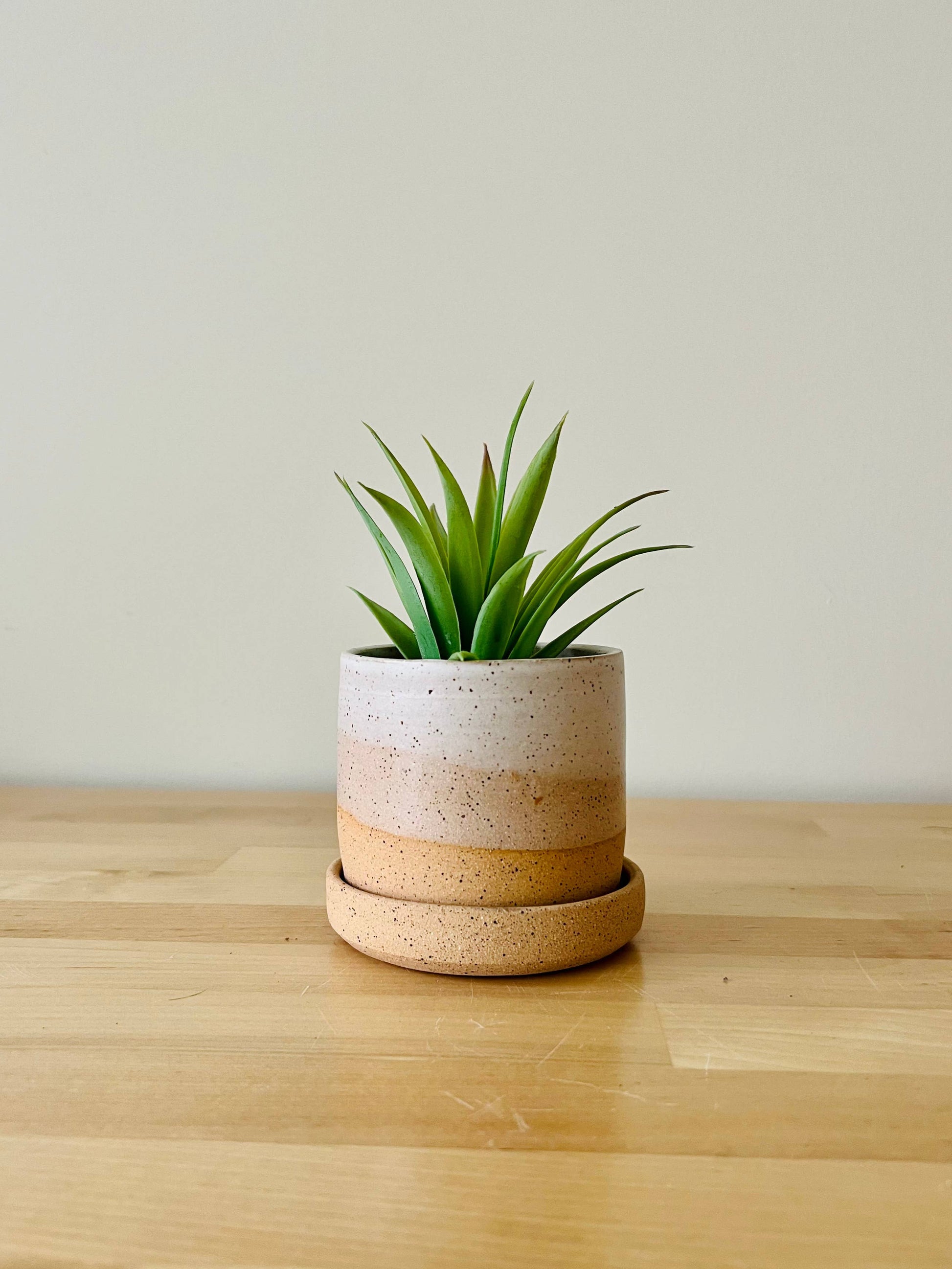 Brighten your space with this handmade ceramic planter, expertly thrown on the potter's wheel and finished with a layered silky white glaze to create a rolling desert hills motif.