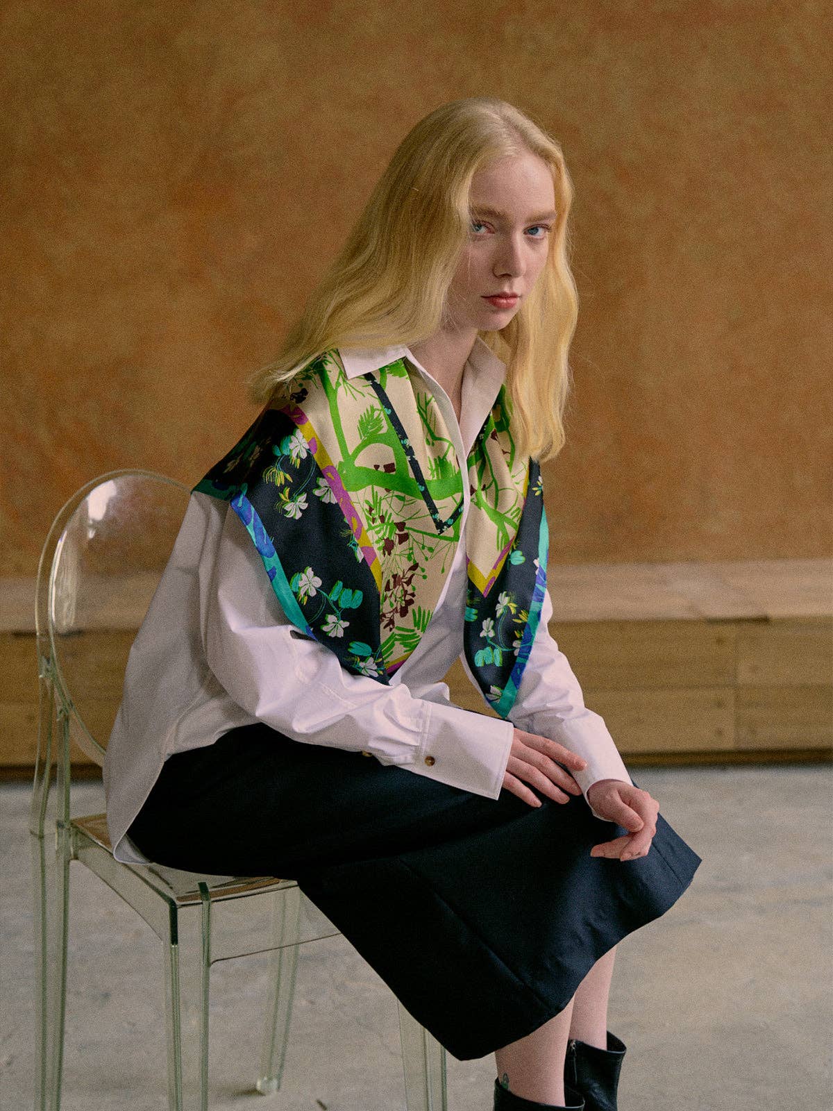 The Floral Tapestry silk scarf blends a western and eastern aesthetic in a modern yet traditional design all its own. Its a refined and versatile piece that will add feminine elegance and visual interest to any look. Amply sized (35"W x 35"L), the scarf can be worn in numerous ways depending on the need and occasion.