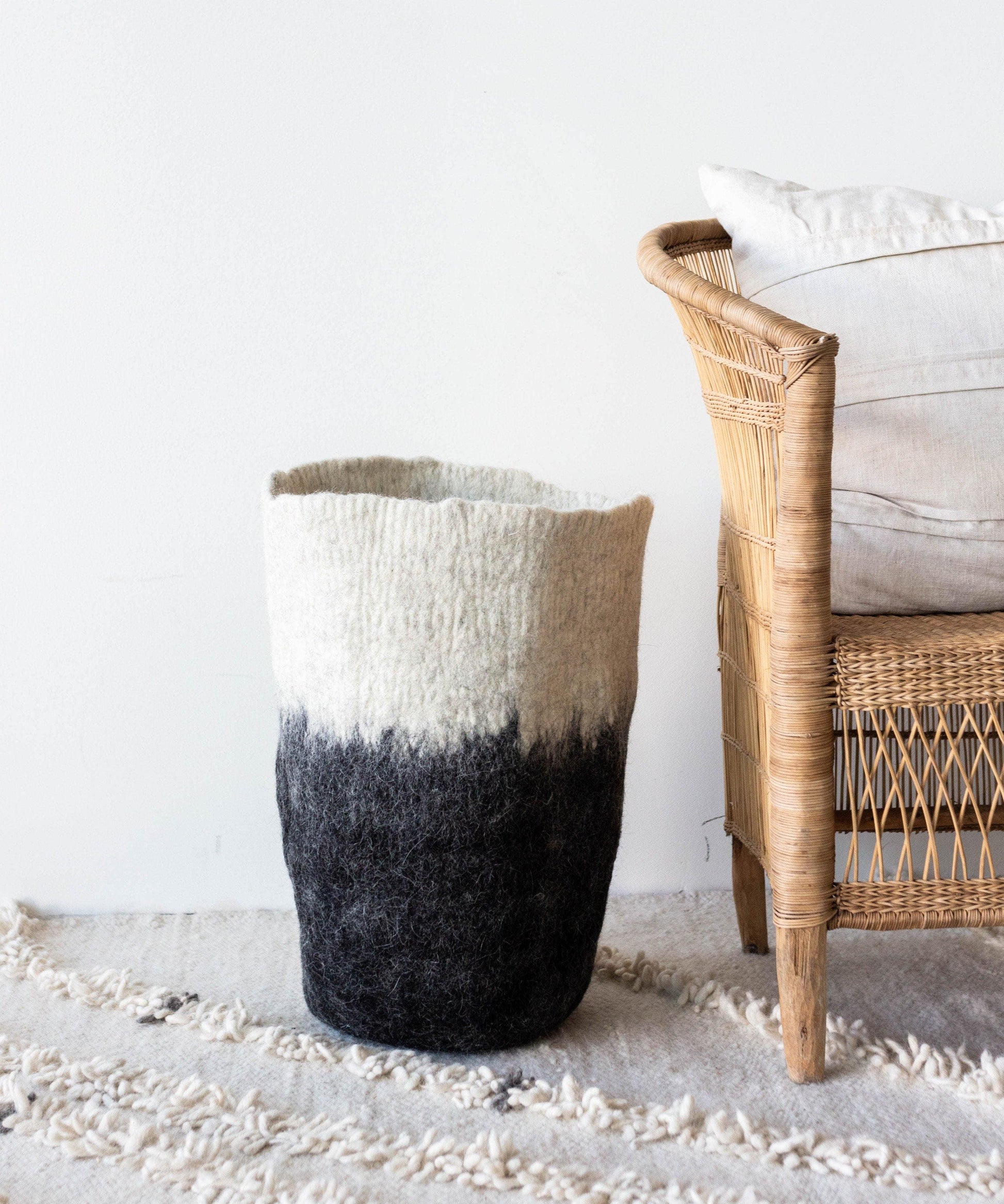 Handcrafted by skilled artisans in South Africa, the Hand-Felted Floor Vase masterfully balances traditional technique with contemporary design. The high-quality felted wool provides a soft, rich texture, while the tall height and and bold coloration creates a striking contemporary silhouette.