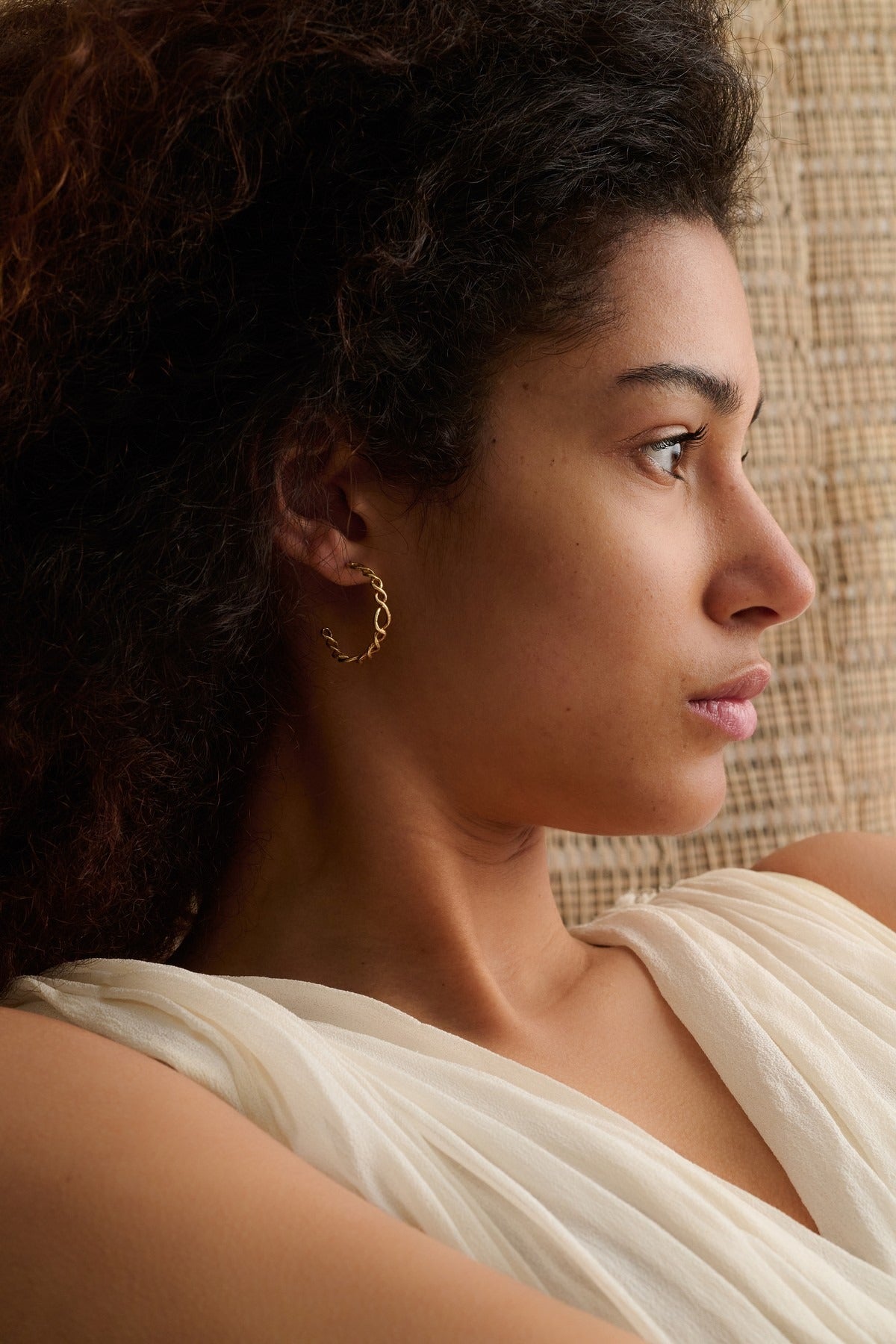 Classic hoops with an interesting twist. Crafted in France of 24 karat gold vermeil, softly hammered by hand to create a subtle shimmer.
