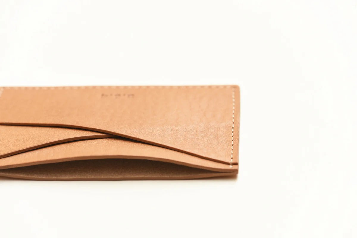 We love these mens' card cases for their compact structure and minimalist design. Handmade in NYC of 100% vegetable tanned Horween leather with subtle pebbling, a small stamped logo at front, and hand-painted exterior edges.