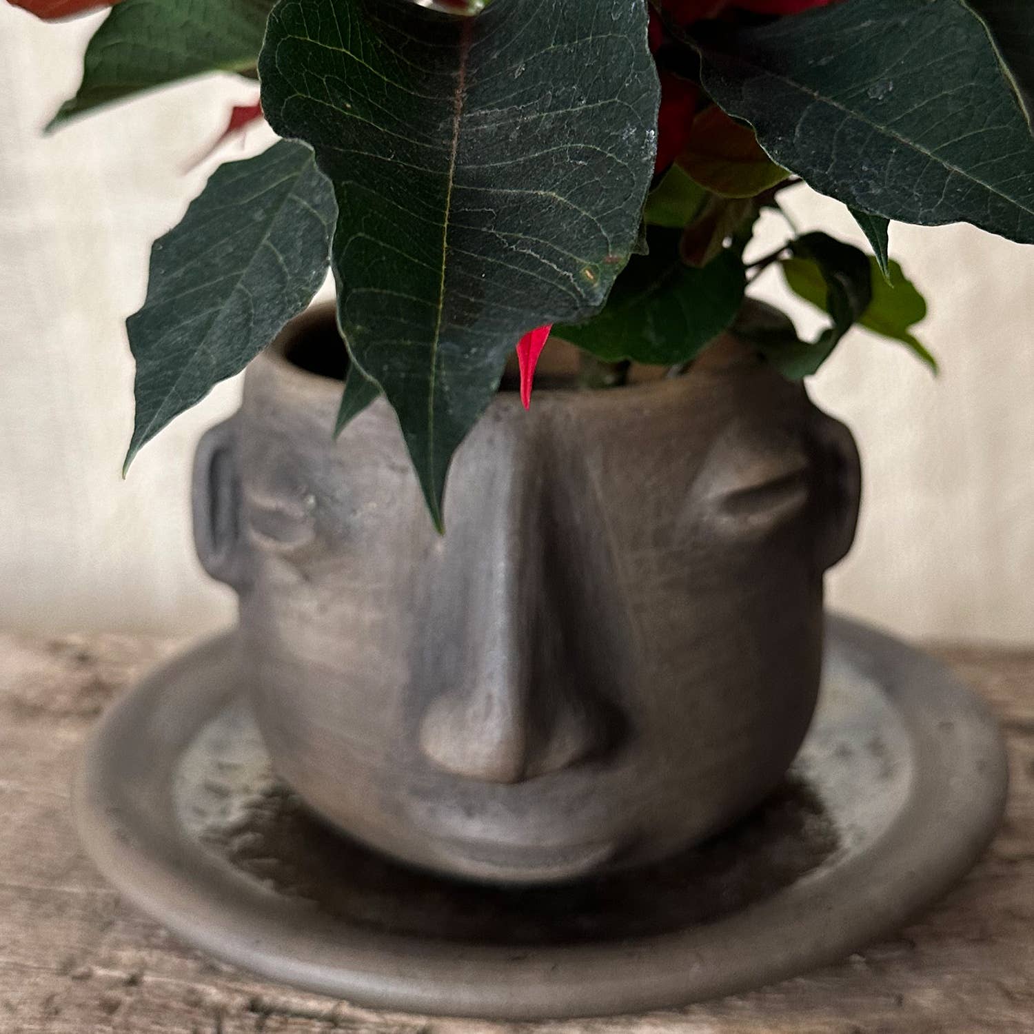 Crafted with Oaxaca's world-renowned black clay, these Face Cups are shaped by hand and baked in an underground wood fire of thick smoke, which gives the pieces their distinctive ashen color.