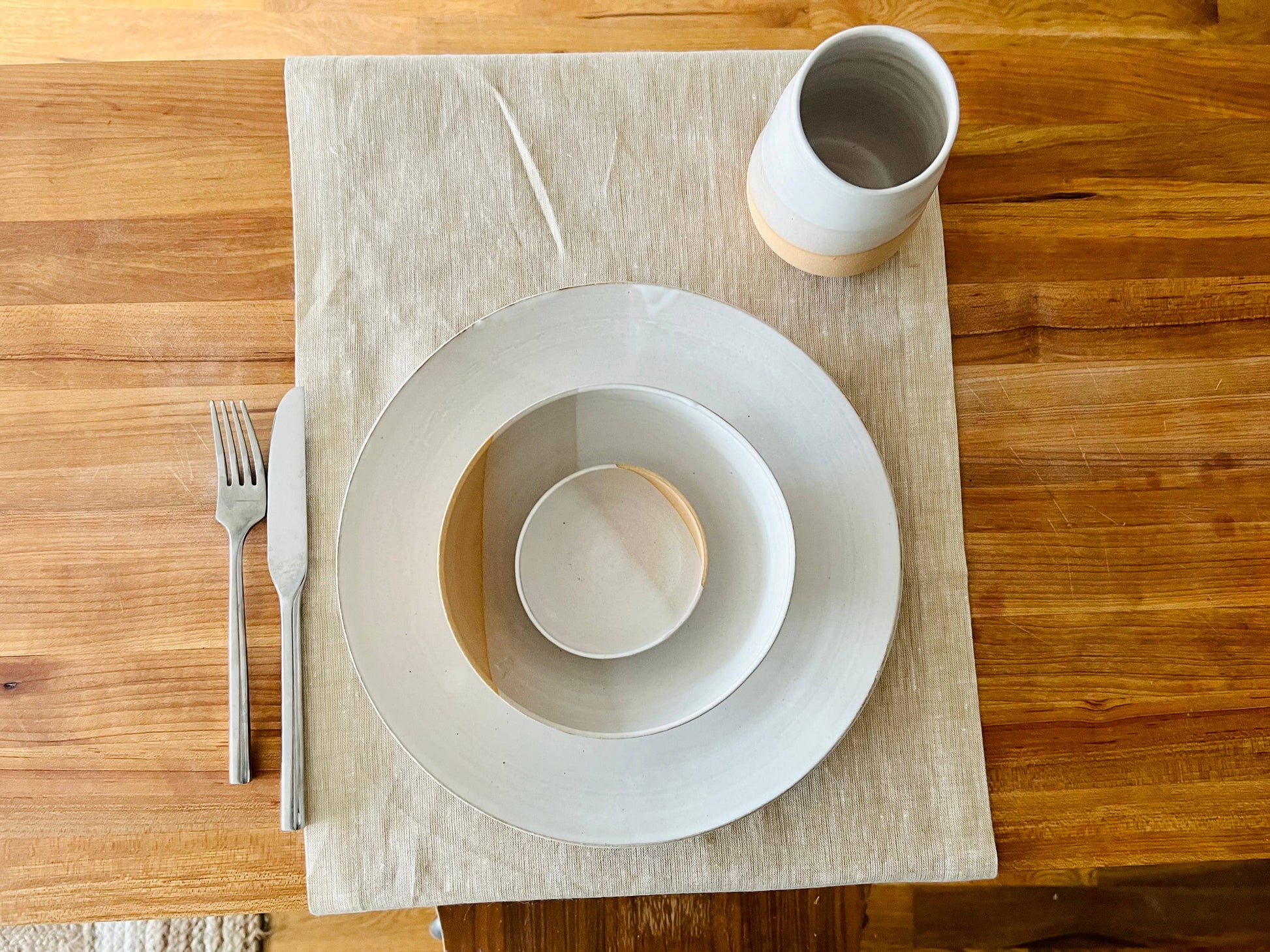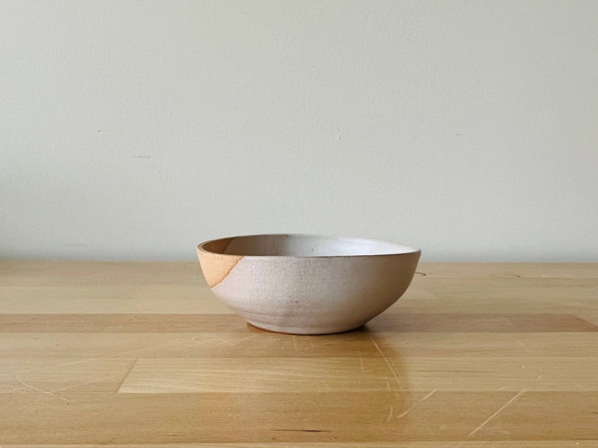 These handcrafted angled bowls are made on the potter’s wheel using durable stoneware clay then dipped in a warm, satin-white glaze to create a subtle desert hills motif. Designed with a natural, unglazed bottom for easy handling, even when hot, these pieces bring both functionality and charm to your kitchen. Perfect for happy hour dips and snacks, fresh berries, spices, or even for baking individual portions.