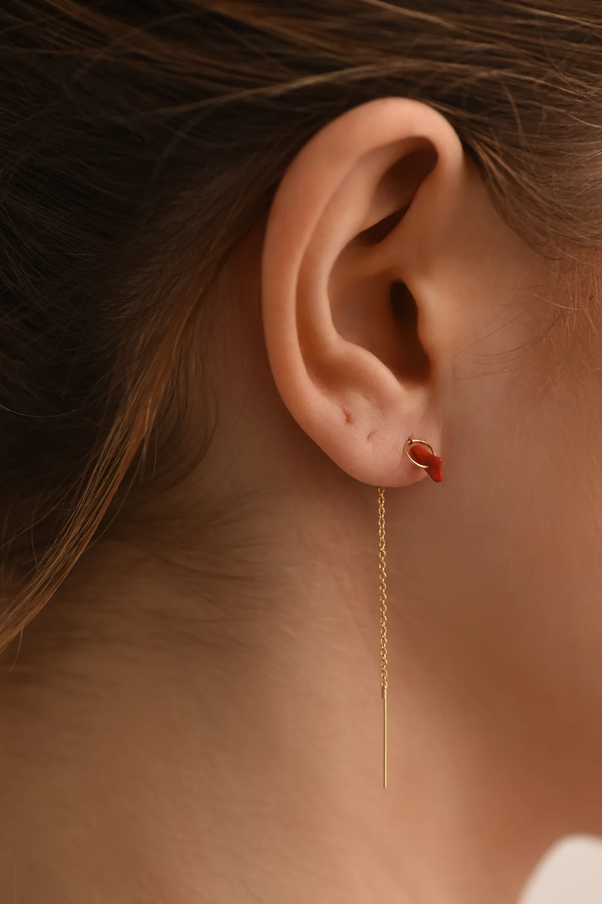 These Red Coral Threader Earrings are subtle stunners. Delicate and feminine with just a small pop of warmth. Made of 14k gold and genuine Hawaiian red coral, they can effortlessly elevate a casual look or be your finishing touch for a dressier occasion. Handmade in New York City.