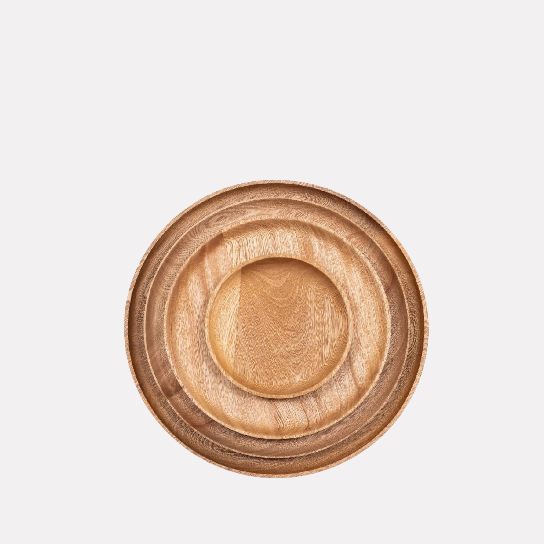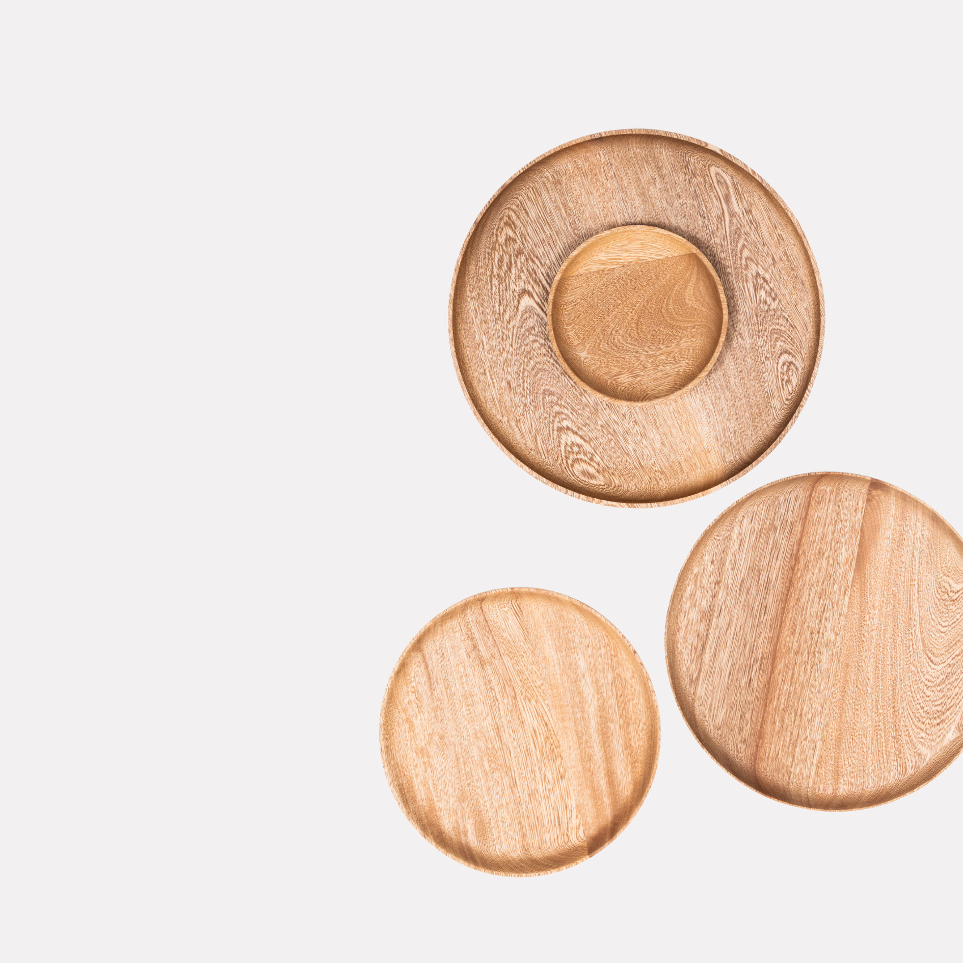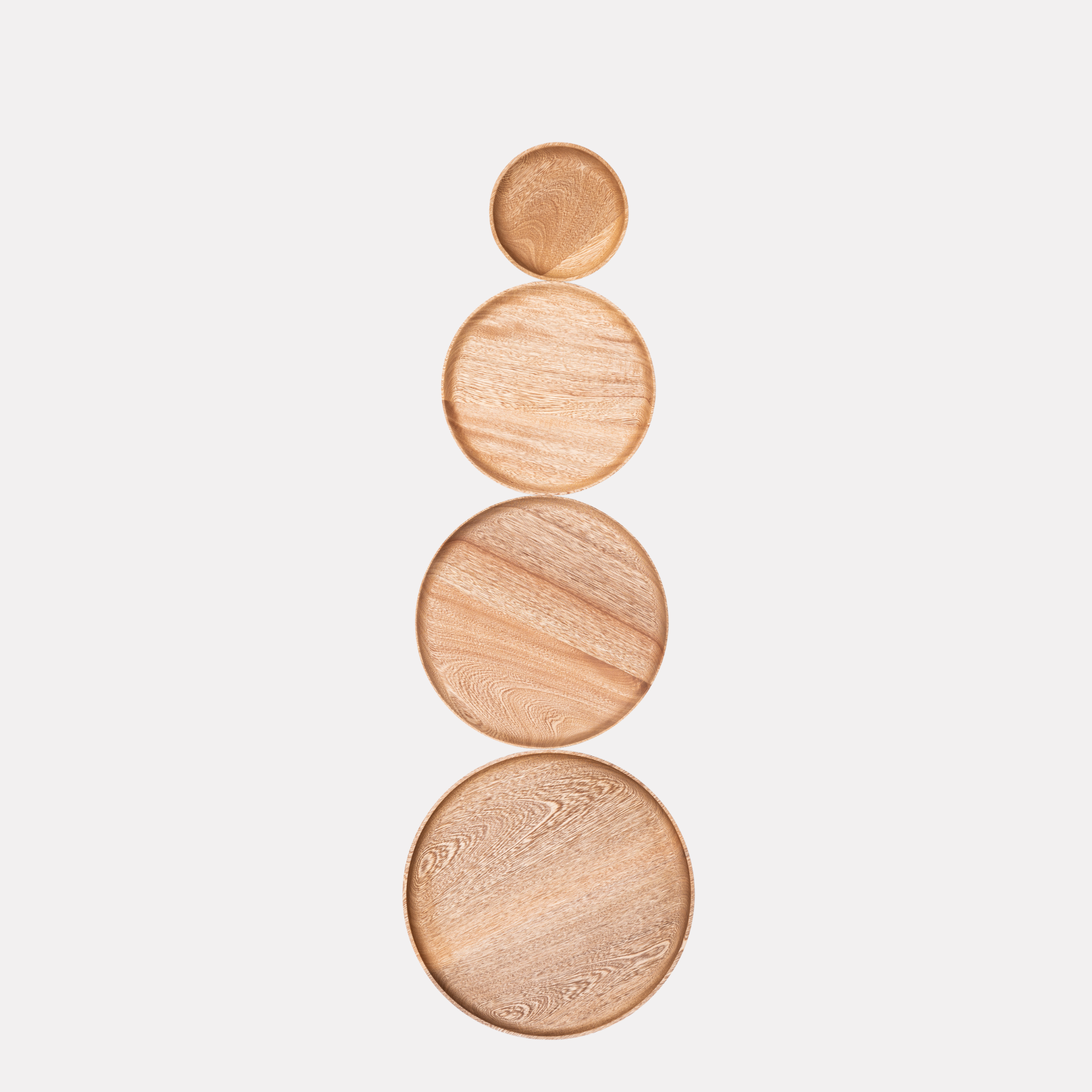 Handcrafted by master carpenters in Guadalajara, Mexico, these simple yet stunning platters are crafted from 100% Rosa Morada wood that will last for years to come. They're ideal for for presenting appetizers or desserts at your next gathering, or for using as decoration in your home. Sold as a set of four, with one plate of each size.