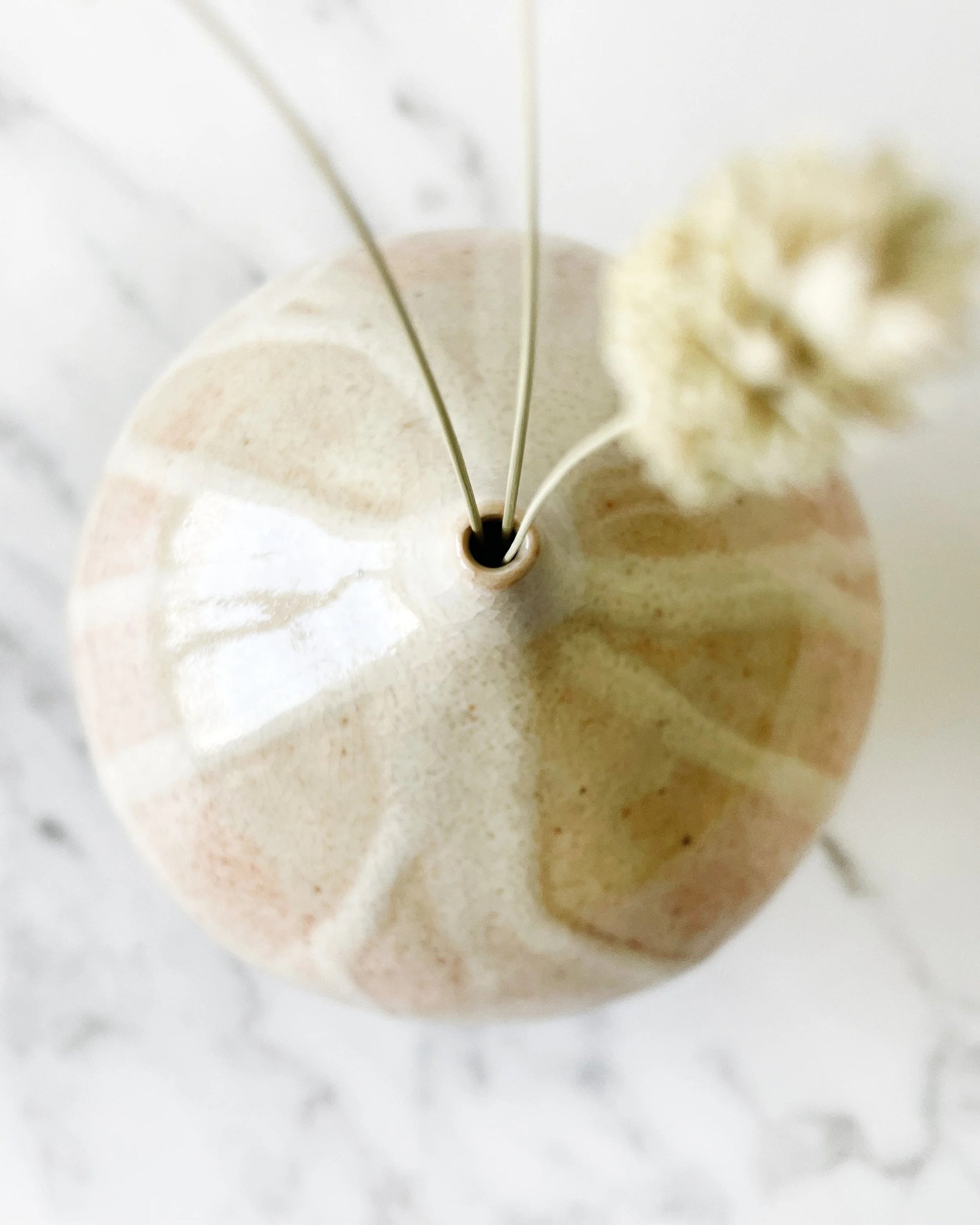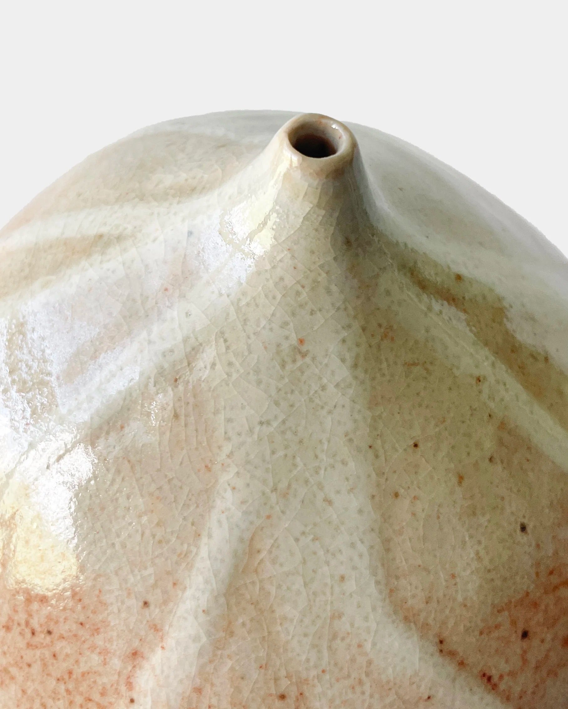This hand-built vessel has a soft, organic shape with a subtle asymmetry. It’s finished with a shino glaze that blushes in places and has soft drips, creating layers of warmth and variation across the surface. Pure organic zen.