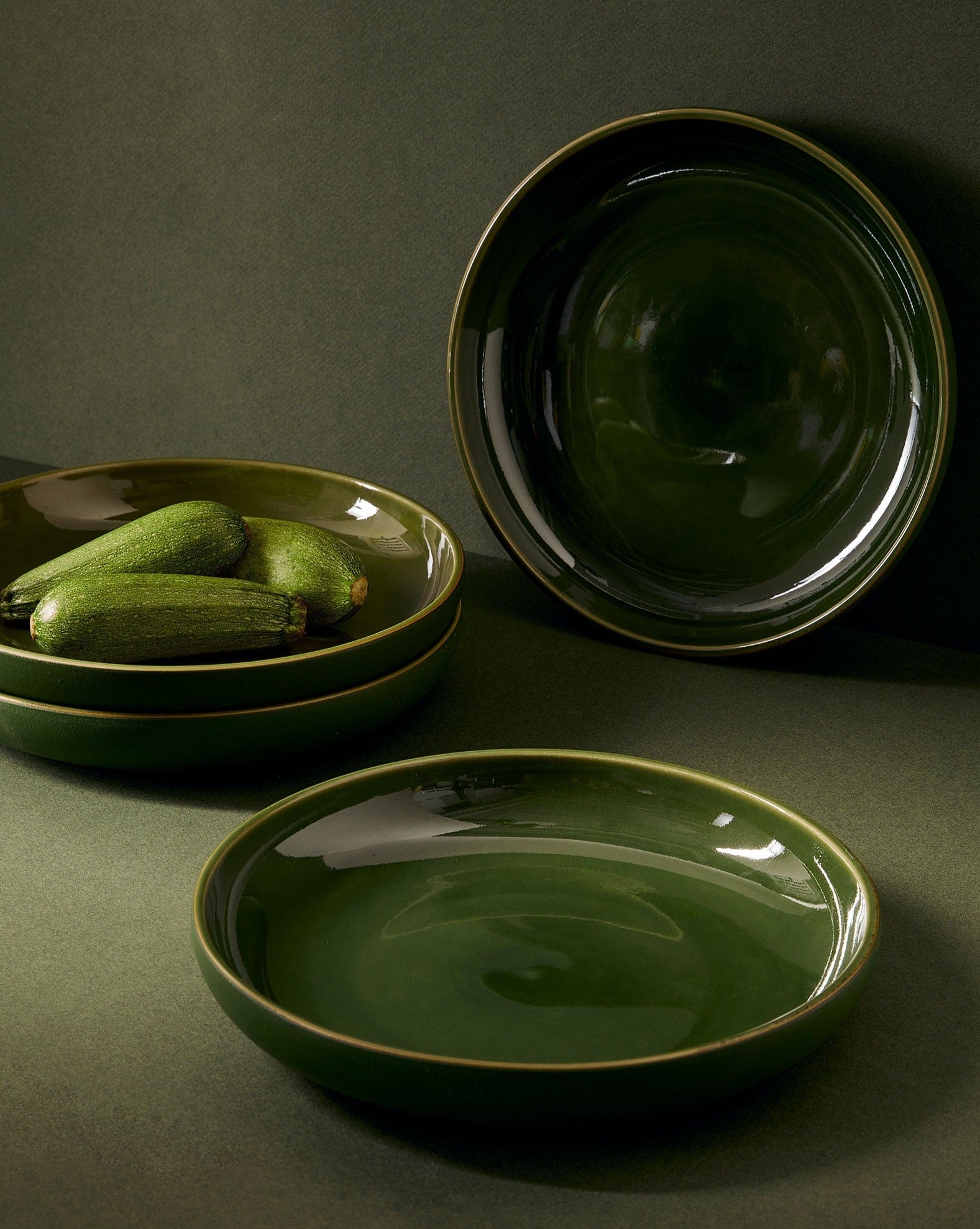 Available in Terracotta, Green, and Black/White. All have an earthy matte exterior with a glazed interior, creating a lovely contrast and protecting the dish from utensil scratching.