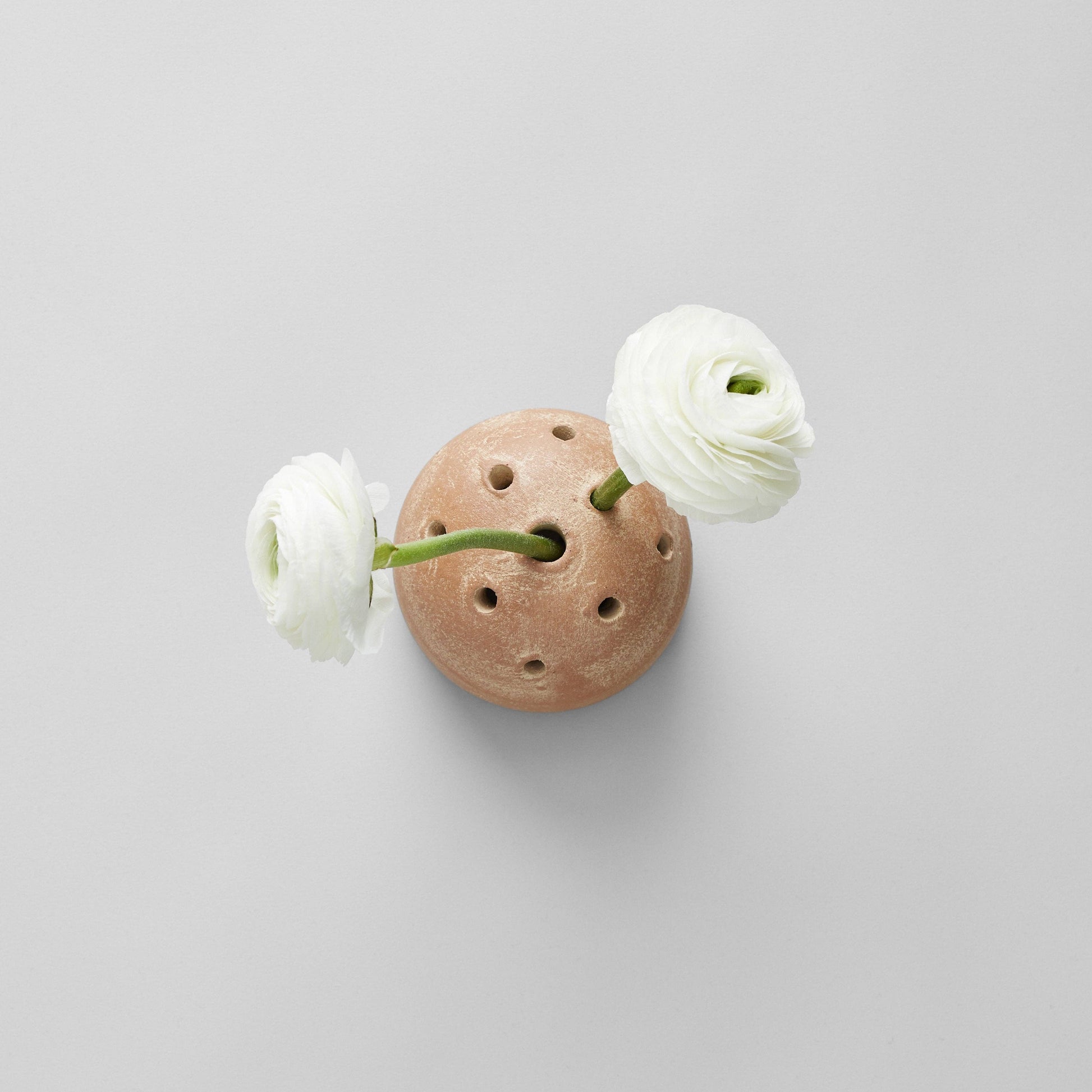 Designed to hold water and stand alone, this dome-shaped Terracotta Flower Frog Vase is handmade by artisans at Atuto in Guatemala from local terracotta clay. This compact design features a protective, water-tight seal on the inside and multiple holes for stems.