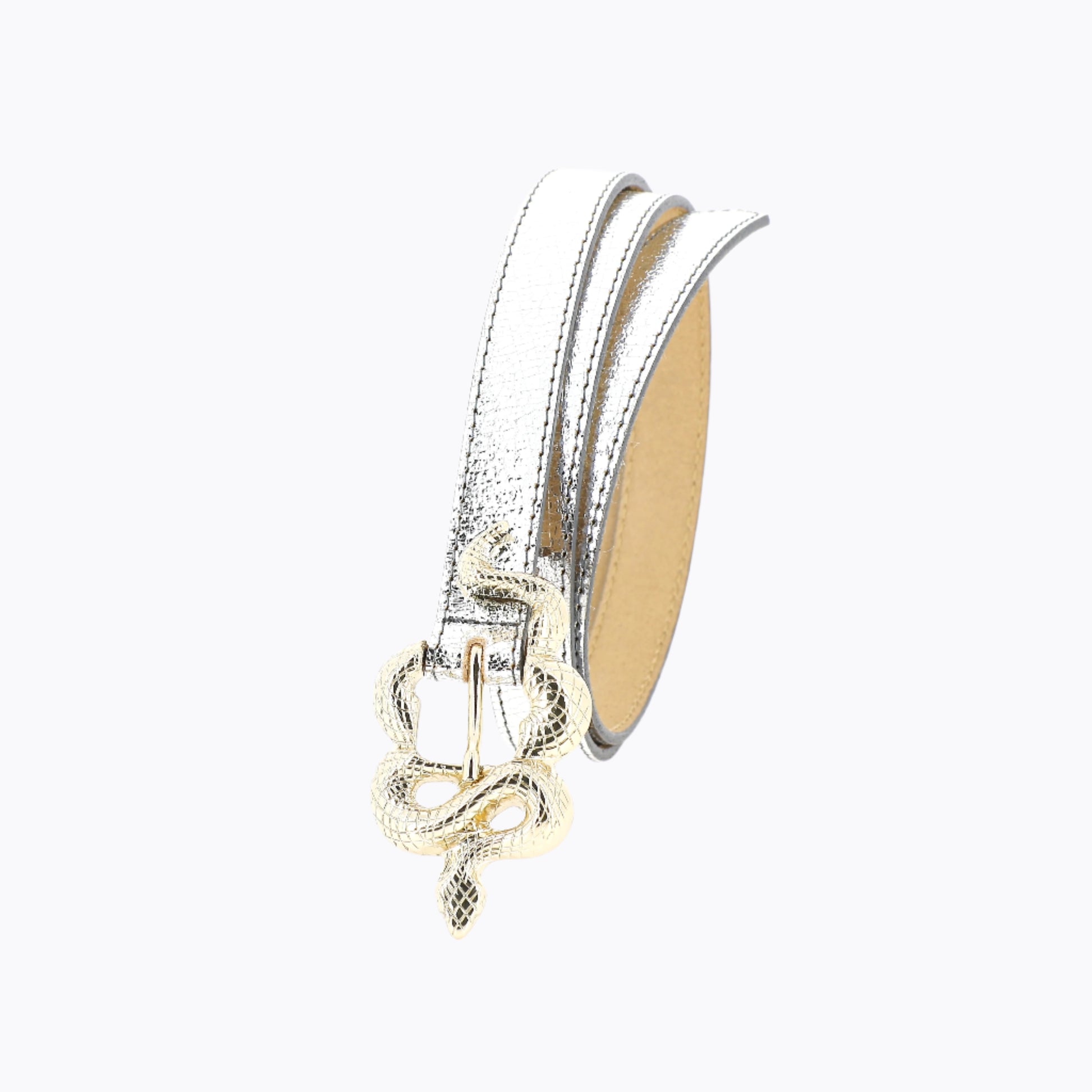 Material/s: Vegetable tanned cowhide leather, gold Zamak snake buckle