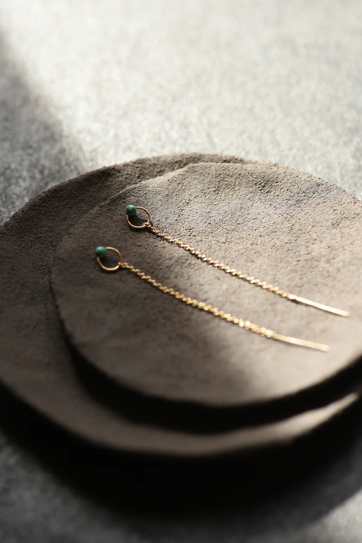 These Turquoise Threader Earrings are subtle stunners. Delicate and feminine with just a hint of western warmth. Made of 14k gold and genuine turquoise, they can effortlessly elevate a casual look or be your finishing touch for a dressier occasion. Handmade in New York City.